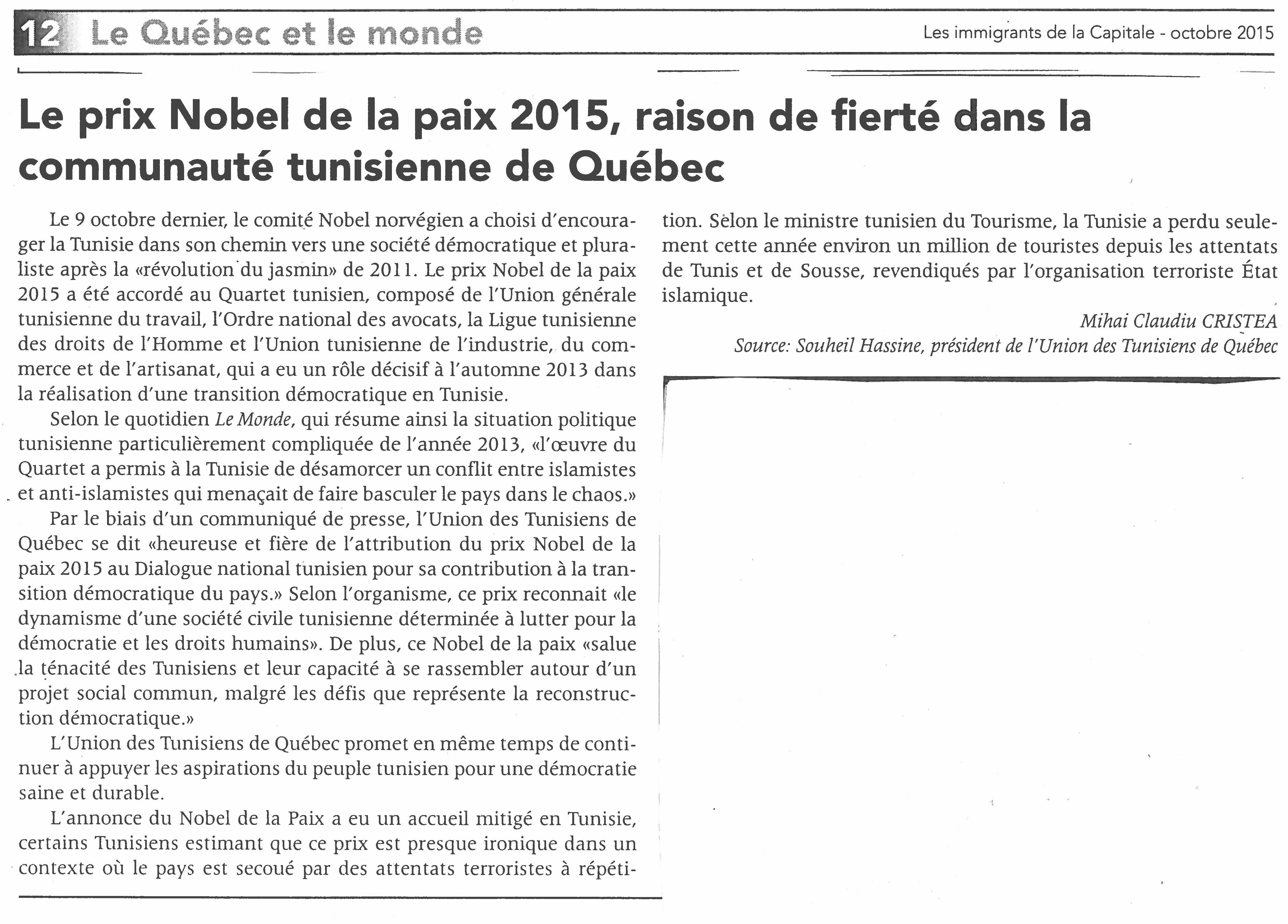 L’UTQ insiste sur l’importance de tenir compte de la présence des Tunisiennes et des Tunisiens partout dans le monde et notamment en Amérique du Nord, lors du processus de sélection des associations dont les représentants siégeront au Conseil.